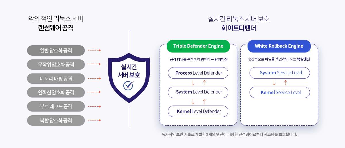 화이트디펜더는 갈수록 진화하는 랜섬웨어 위험/공격으로 부터 기업을 안전하게 보호합니다.